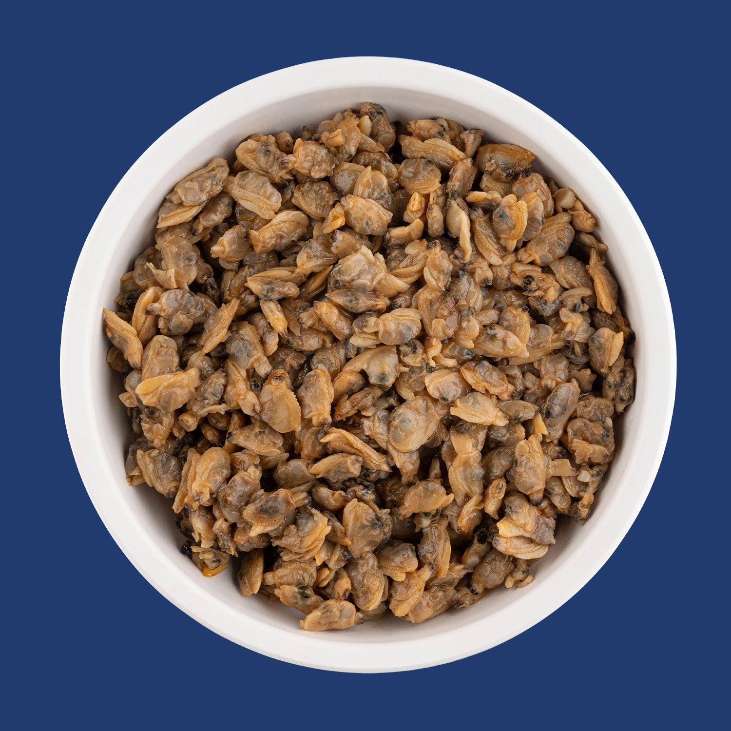Polpa di vongole, olio EVO, olio di mais, vino bianco, brodo vegetale, peperoncino.